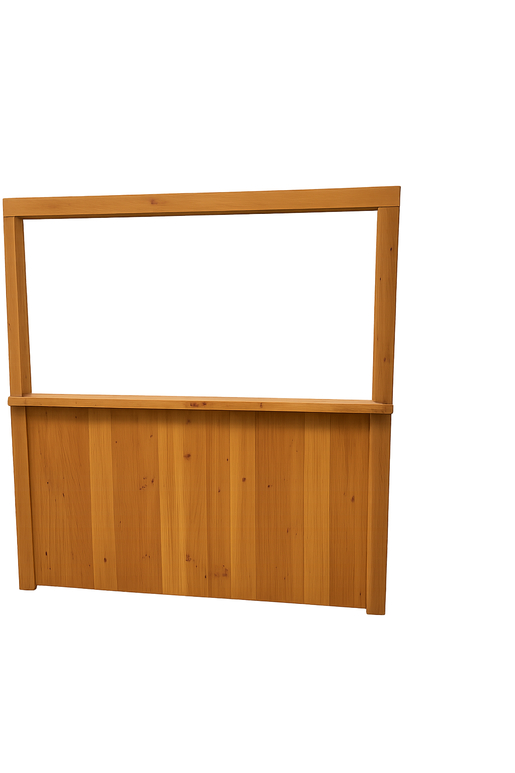 Bar steigerhout 2×0.8m met lekblad groot, achterwand en kast