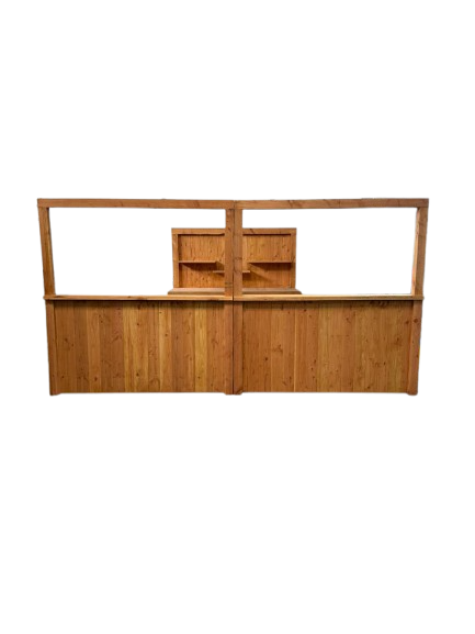 Bar steigerhout 4×0.8m met lekblad groot, achterwand en kast