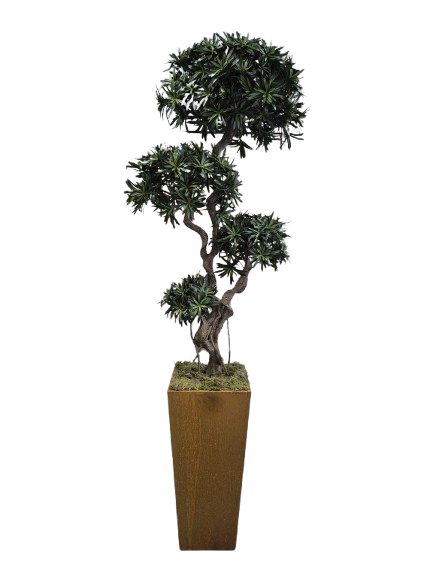 Deze mooie plantcombinatie bestaande uit een kunst Podocarpus in cortens staal bloempot is een mooie sfeermaker op uw event en/of bruiloft.